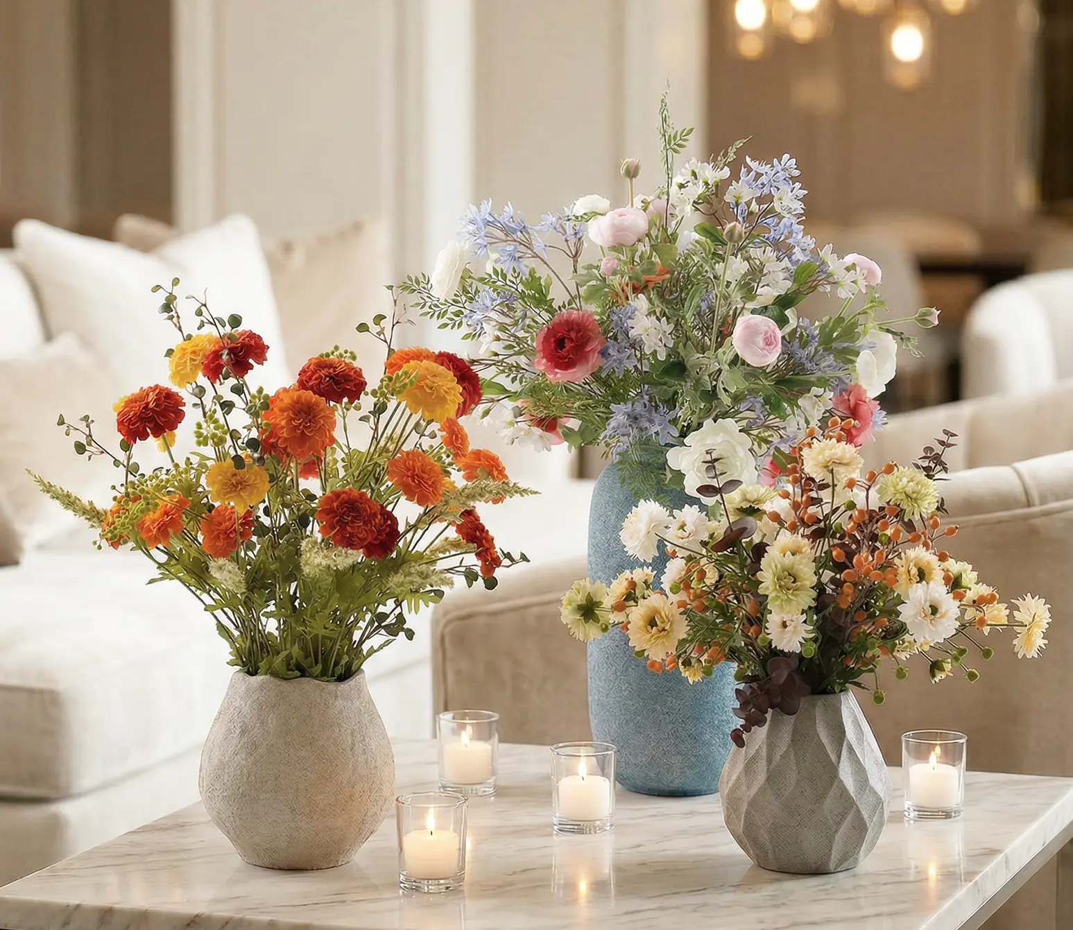 From living spaces to grand lobbies, our curated silk bouquets infuse every corner with refined color, timeless elegance, and subtle inspiration.