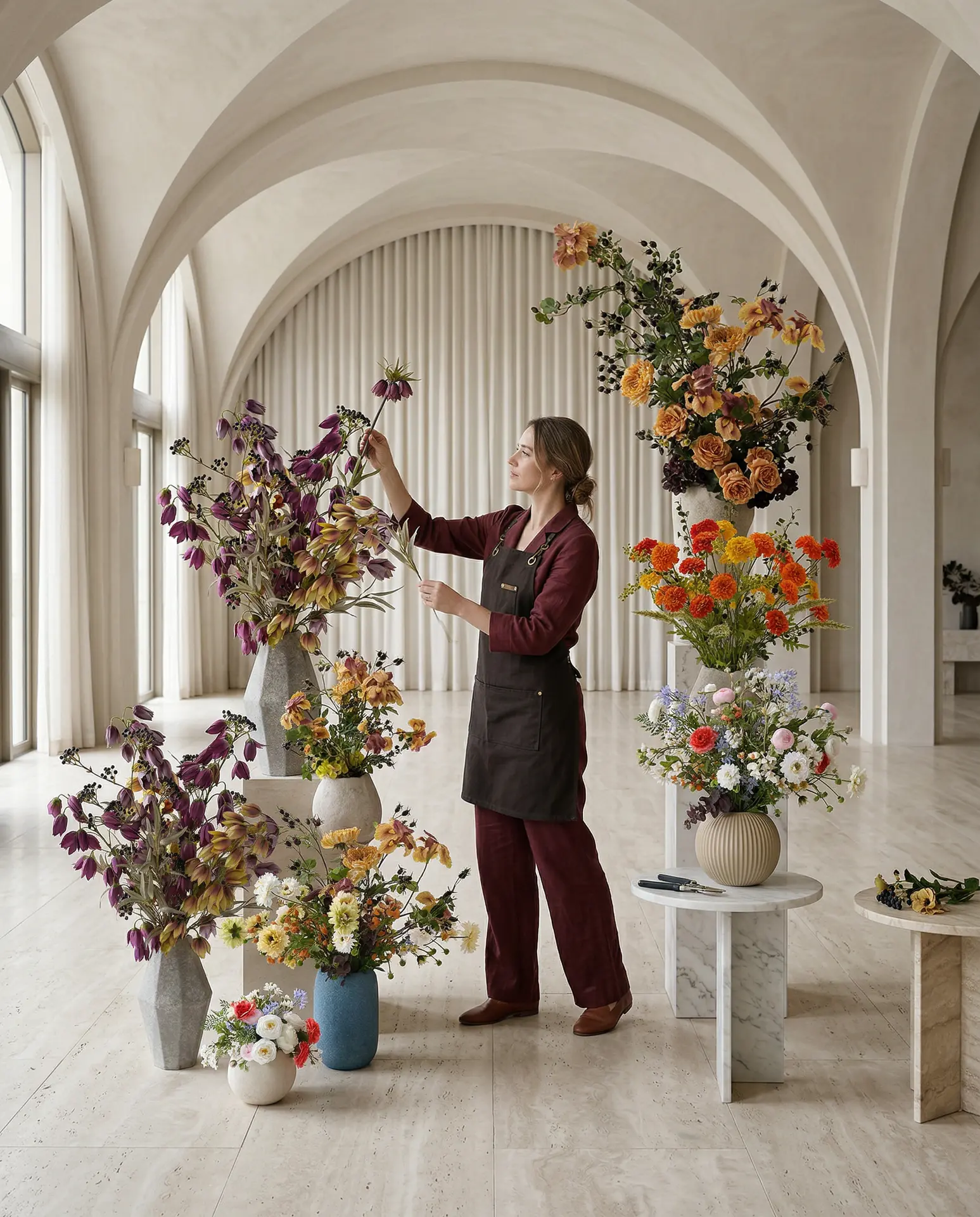 Gunay personally visited Portuguese vase producers to carefully select designs that perfectly align with our vision of natural elegance. Collaborating with skilled artisans, we chose vases crafted from high-quality materials that mimic organic textures and tones, ensuring they enhance the beauty of our silk flower arrangements.